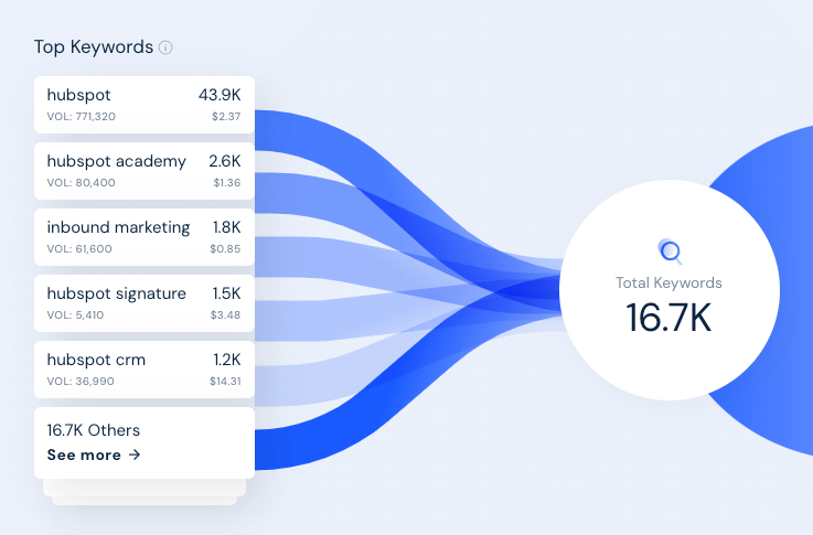 Les mots-clés principaux d’Hubspot tournent autour de sa propre marque.