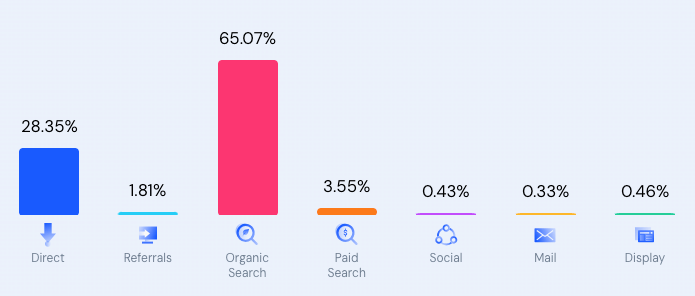 Avec 65,07% de trafic en recherche organique, on ne peut que s’incliner devant l’équipe en charge du référencement et du contenu 😮